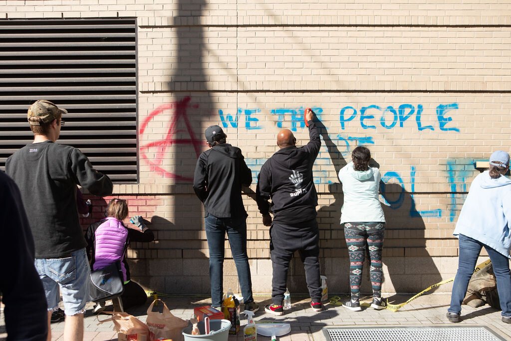 Though investigators, activists, officials, local media, and police are still working to establish a timeline to better communicate with the public, Sunday morning shone a bright light on the community’s quest for solidarity. Gathering in the hundreds, every day Grand Rapidians of all races, ages, and backgrounds took to the streets with brooms, scrub brushes, and plywood to clean public spaces, wiping away broken glass, scrubbing graffiti, and boarding up smashed windows.