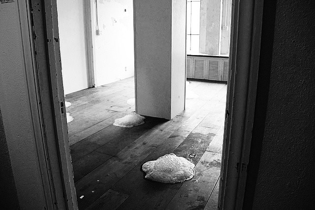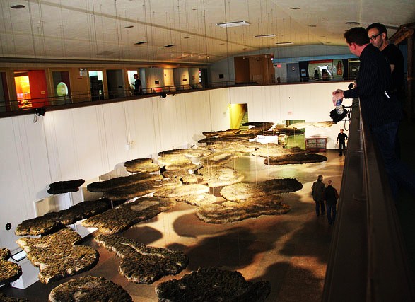 A recent Cranbook Adademy graduate, installation artist and sculptor Lisa Walcott took over the taxidermy lab at the old public museum. In it, she creates a fun and interactive exhibit of a “lab gone mad,” with the raised floor bubbling to life from what appears to be a bad mixture of mint Mentos and Diet Coke. Though we found the exhibit fun and humorous, according to the artist’s statement: “There is a constant growth and loss in the falling and rising suds. Corners, cracks, gaps and nooks are mysterious by nature alluding to a darker unknown.” Paul recommends coming in the evening, as a moving light in an old shaft creates an eerie ominousity to the exhibit. And yes, you can walk on the wooden floor.
