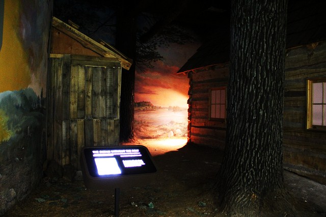 Apparently upon setting her eyes on the old log cabin exhibit at the old museum, Lily Cox Richard had a stroke of inspiration. Based upon a book she had read involving a lightning rod salesman who worked out of a cabin in the early 20th Century, she transforms this section of the museum into a historical perspective of this strange industry. It includes actual pamphlets and sales manuals on how to scare the gaggles out of customers and force them to buy lightning rods, with horrifying pictures of churches and homes burning and people permanently scarred by lightning strikes. Be sure to enter the cabin, you get to hear a narration of what she imagined the sales pitch to sound like.