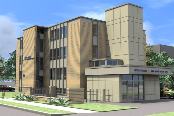 Saint Mary’s Health Care is in the midst of transforming an outdated mid-century building directly behind the hospital into a contemporary and welcoming guest house for the families of patients.