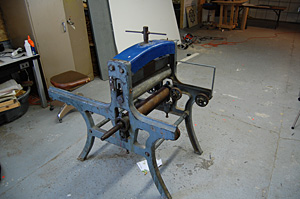 Dinderbeck, a made-up word that means nothing but sounds cool, is the creative moniker for a new studio and gallery space on Grand Rapids' West Side – a place where printmakers can fire up the presses, both vintage and modern, and express their artistic visions on paper. The studio, 323 Straight Ave. SW, is across the street from the former Tanglefoot Co. warehouse, which is now a hotbed of artists and art studios.With nearly 2,000 square feet of work and display space, Dinderbeck has plenty of room for artists to lease space for a private show or for those who want to rent time on the specialty printing presses: a 1951 325G Vandercook Hand Proof Press for relief printing, or the soon-to-be-refurbished Fuchs & Lang lithography press rescued from a scrap yard. An intaglio press is on the wish list. "Our first intent was to use the space as a private studio for our own work," says Brandon Alman, "but we wanted to figure out how we could use the space and generate interest within the space, so we decided to expand it and offer it to more people."Alman is a partner in the endeavor with Kyle Isbell, Trevor Hill-Rowley, Anthony Mead and Lucas Schurkamp. All of the partners are artists, four of them are printmakers and they are all students or graduates of Kendall College of Art & Design. Besides the print shop, artists can rent the studio's woodshop with woodworking tools.Dinderbeck hosted its first show in June and will be the site of "Kung Fu (hard work + reward)" on Oct. 22, featuring the works of the nine artists in The GR8 Death Squad, formerly The GR8.Source: Brandon Alman, Dinderbeck Studio, Dinderbeck GalleryWriter: Deborah Johnson Wood, Development News Editor