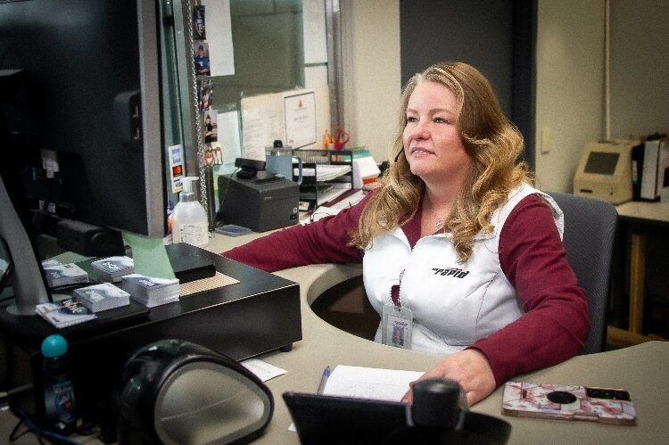 Kristie Azzoli at work at The Rapids' Information Center.