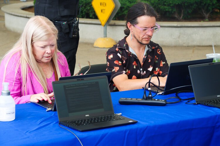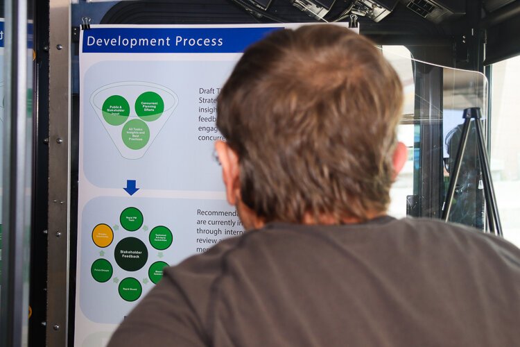 Photo by Tommy Allen – The public was invited to tour the bus to learn about the process, then move to the boards before finally sitting down to complete a survey.