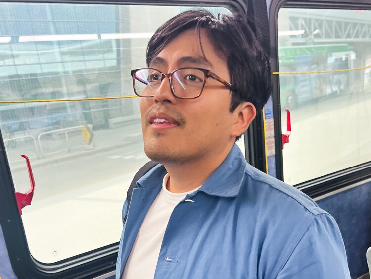 Ken Miguel-Cipriano reads facts about The Rapid bus.