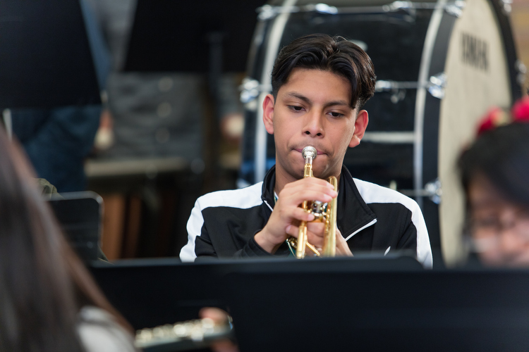 “When I started here, 20 years ago, we had 24 in the high school band,” Gabrielse says. “This year, we were just under 100. We’re at 98. And next year we will be at about 108. And the following year, I think we’ll probably top off at right about 125. And that’s only one senior band.”