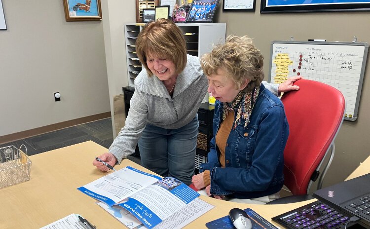 Barb Olsen, an event and volunteer specialist with Disability Network West Michigan, works with a volunteer at the organization.