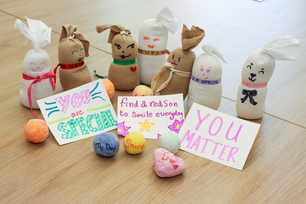 The group also came up with fun activities to bring into schools. One of those is a “Share the Love” beach ball game, where students toss a beach ball with positive affirmations written on it, read one aloud, and pass it to the next person.