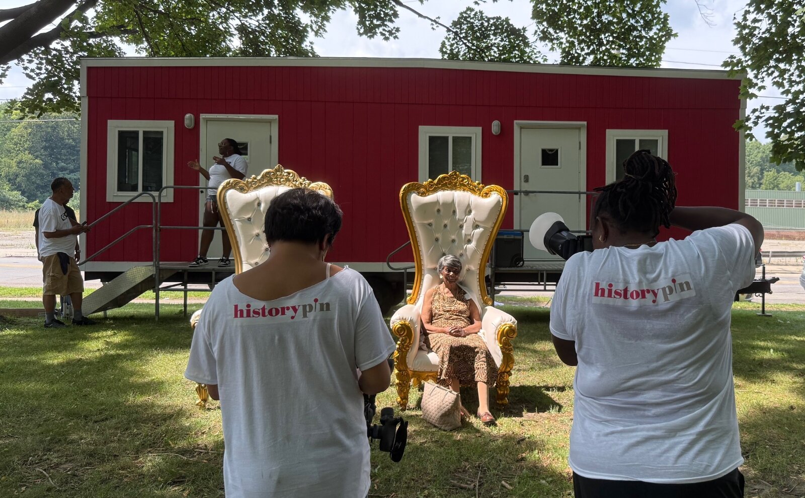The interviews were filmed by the Grand Rapids Media Initiative & Film Incubator (GR-MiFi) in a trailer donated for the day by Pioneer Construction.