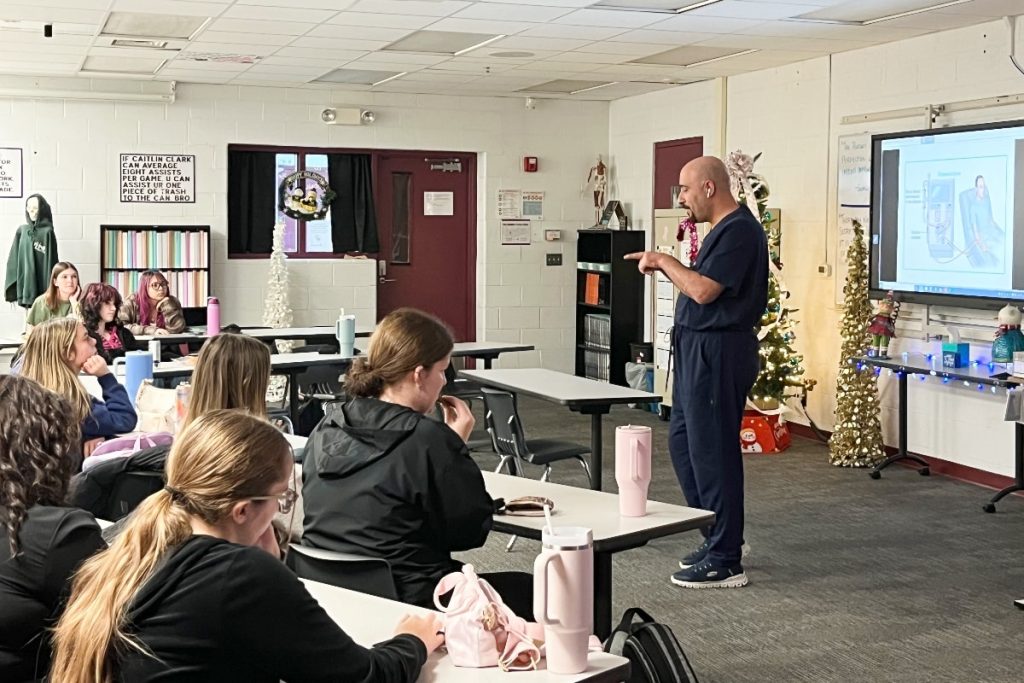 “Freshmen can take a semester-long Introduction to Health Care Careers class. We give them a taste of some jobs that are out there to see if that’s something they’re interested in,” Moore says. “Sophomores can take health science and then kind of grow in that … through senior year. We have our Career Center classes for health care careers specifically.”