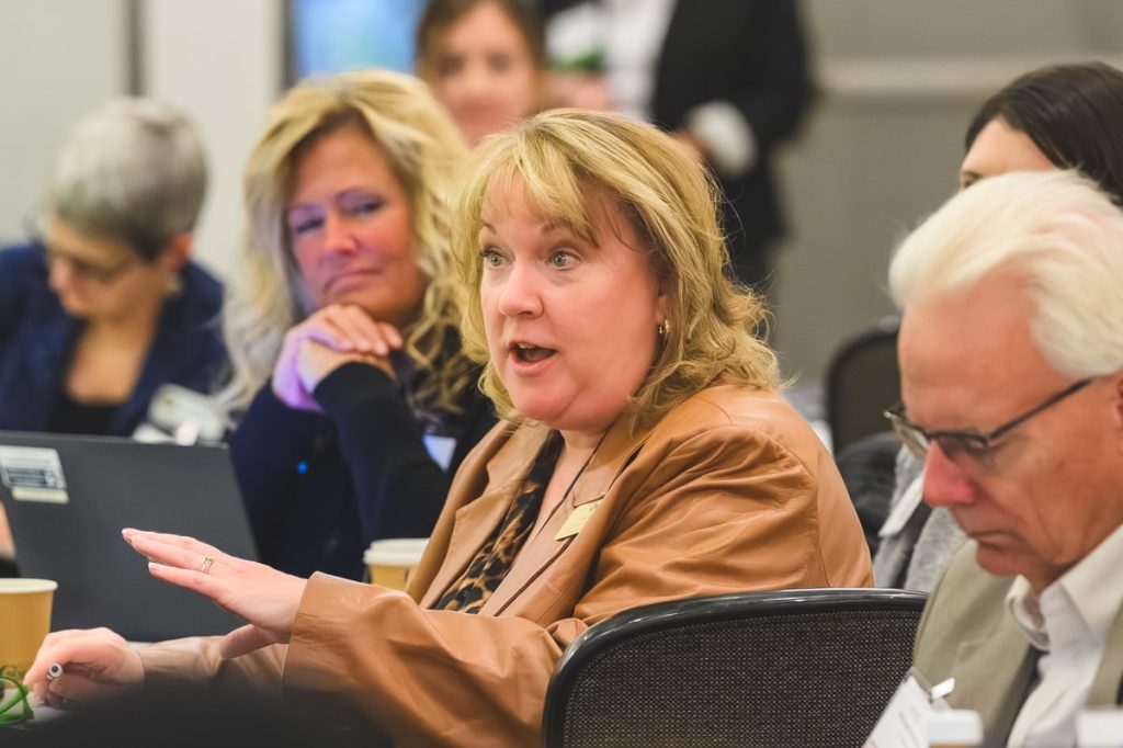 In addition to sharing successful collaborations through presentations, the Solutions Summit provided abundant opportunity for informal sharing. For example, Gillian Ryan, Detroit Regional Chamber specialist, employer engagement, told the folks at her table about a collaboration growing the health care workforce in her region.