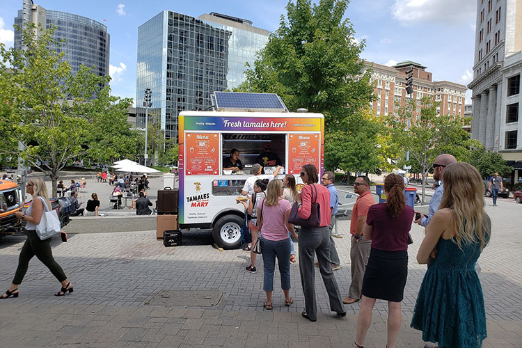 The cart itself was a leap of faith. Partnering with New York-based Move Systems, Tamales Mary became the first mobile food cart operating Grand Rapids. Though Move Systems produces their carts in Walker and ships the vast majority to the food cart-prolific NYC, they sought an entrepreneur to pilot their first eco-friendly, solar and electrical-powered mobile food cafe. And thus, the tamales cart was born.