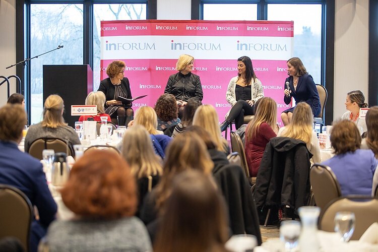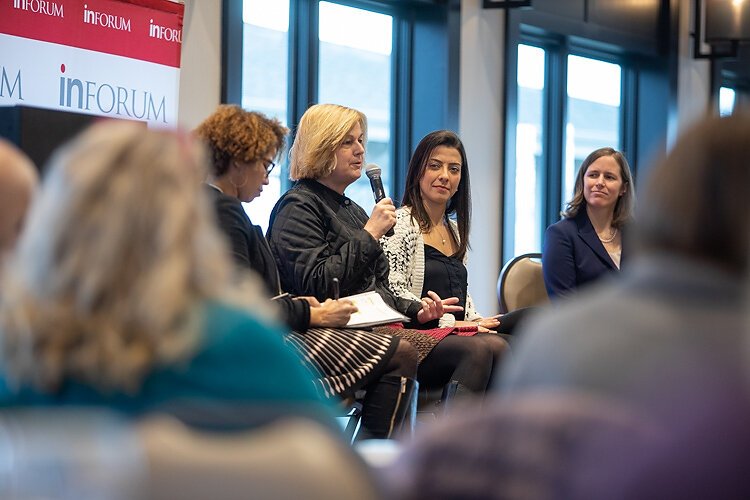 Inforum president and chief executive officer Terry Barclay said the focus on fixing the broken rung is “an investment in the future” and shared her optimism as she looks forward. For attendees, she issued a call to action, more specifically, a “call for champions, including men,” highlighting that “what senior leadership does matters.”