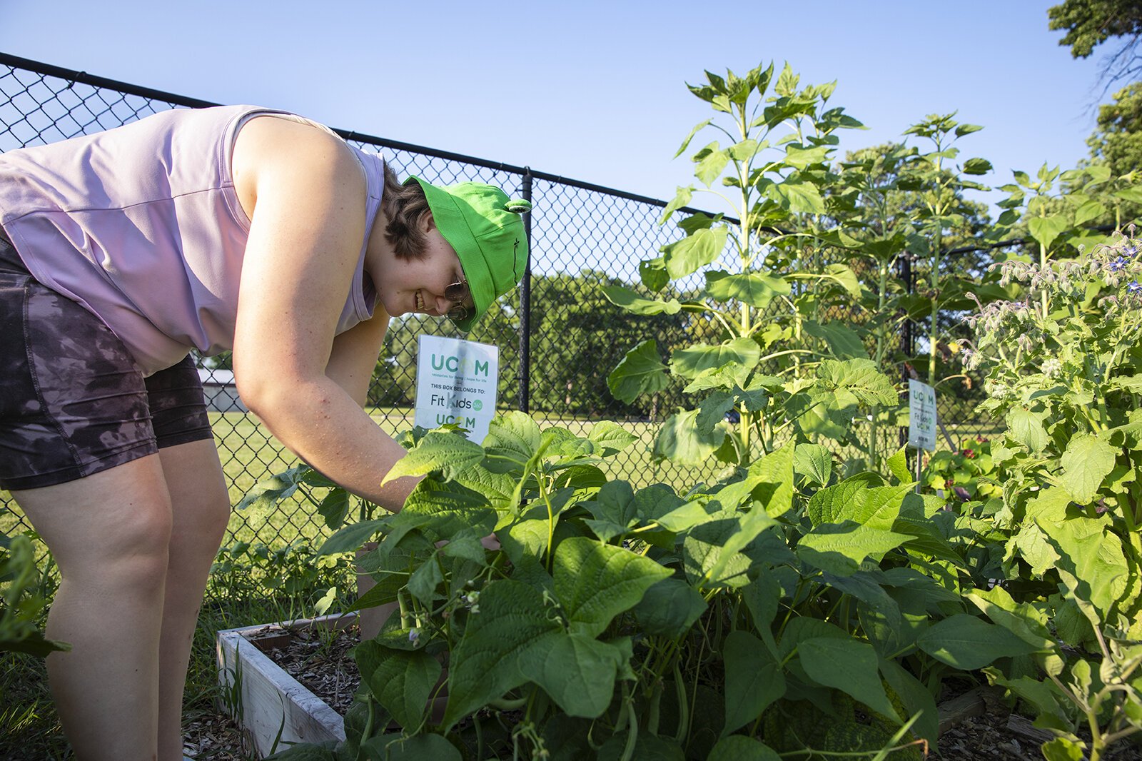 FitKids360 staffer Kaci Ellens works in the Youth Mentor Garden at Marquette Park in Wyoming, Mich.