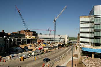 Construction site showing progress of the Helen DeVos Children’s Hospital