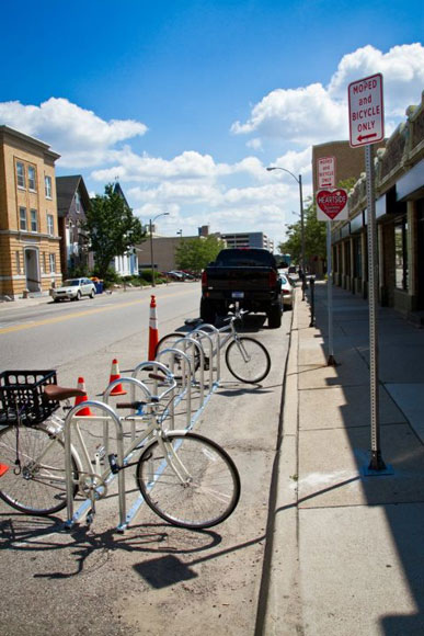 Photos credits go to Josh Leffingwell for the photo of the bike corral; Alissa Lane for the photos of Josh Leffingwell, the neighborhood block party and the Salon meeting; and Craig Hickerson for the photo of Jonathan Pichot.