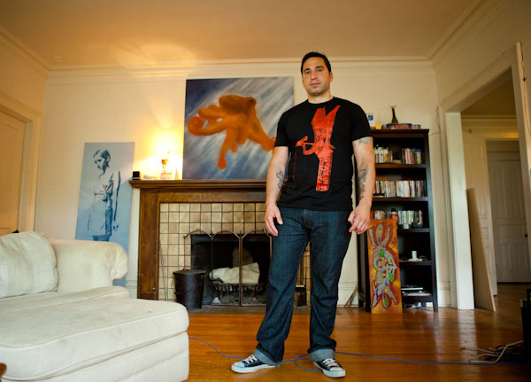 Now that he has a direction for his art, he has found a tight-knit group of artists that he works with on a regular basis. One of those collaborators is Gordie Zalewski, who owns the screen printing company, Legion Design. Meyerhoffer comes up with t-shirt designs, then sends them to Zalewski to print. It’s this mutually beneficial relationship that Meyerhoffer hopes to grow with other artists.
