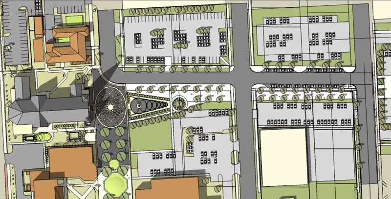 St. Andrew’s is a short walk from downtown. In a few years, this area could be an important element in an expanded and even more vibrant urban center. Instead, the diocese’s plans show a small “green space” created by the school’s demolition, surrounded by acres of surface parking. This plan resembles nothing more than the parking lot of a suburban shopping mall — an environment that has no respect for time and place has little respect for people, however suitable it may be for the parking of cars.