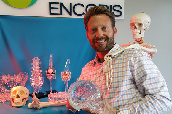 Encoris is a five-year-old, Holland, Michigan-based company that specializes in the design and manufacturing of clear, custom skeletal models that are used by medical device companies like Stryker Orthopaedics, Johnson and Johnson, and Medtronic to educate and promote implant devices in the medical field.